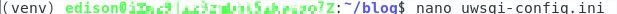 然后(此时所在文件夹是blog里)新建一个uwsgi的配置文件,并编辑以下内容,然后启用uwsgi:
